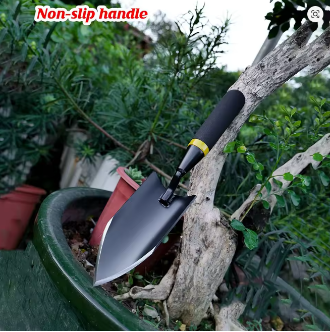 Esta pala de jardín de acero al carbono es ideal para cavar y plantar en suelos duros. Su punta afilada facilita cortar raíces y romper piedras. El mango de goma antideslizante proporciona un agarre cómodo y seguro.
